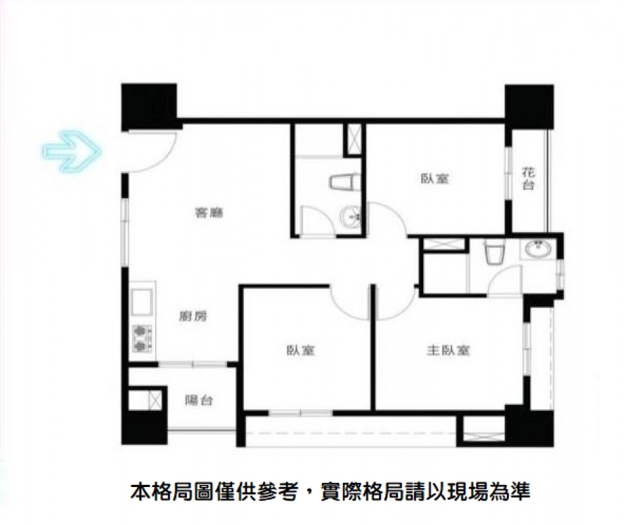 3房2廳2衛1陽台